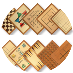 - 11 Board games, 7 Card games, 5 Dice games, Mikado, Dominoes
