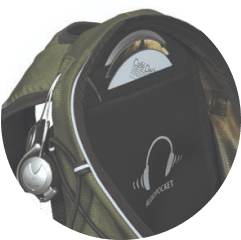 SoundRackTM CD or MP3 player bag made of shock absorbing neoprene, with sleeves for 3 CDs