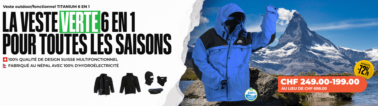 Veste outdoor/fonctionnel TITANIUM 6 EN 1 - Homme/FemmeCHF 249.00 - CHF 199.00Au lieu de CHF 698.00 -