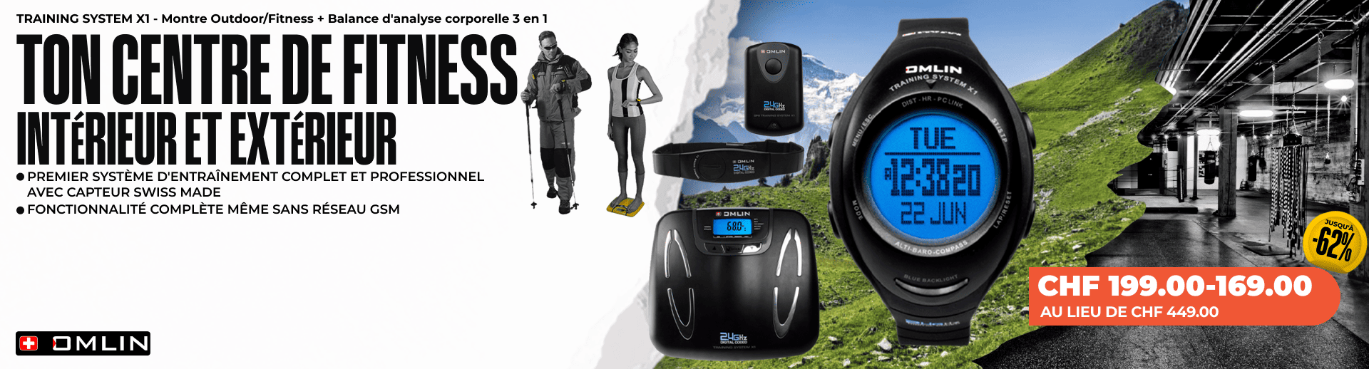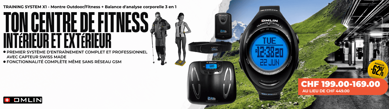 TRAINING SYSTEM X1 - Montre de fitness & d'extérieur + Balance d'analyse pour la forme du corps 3 en 1 (+ Optionnel : GPS POD X-TENSION)CHF 199.00 - CHF 169.00Au lieu de CHF 449.00 -
