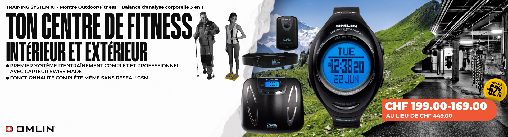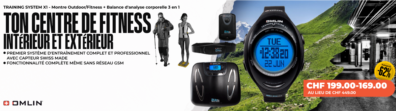 TRAINING SYSTEM X1 - Montre de fitness & d'extérieur + Balance d'analyse pour la forme du corps 3 en 1 (+ Optionnel : GPS POD X-TENSION)CHF 199.00 - CHF 169.00Au lieu de CHF 449.00