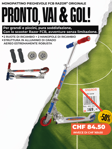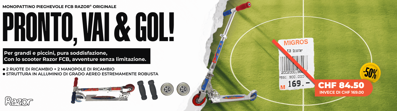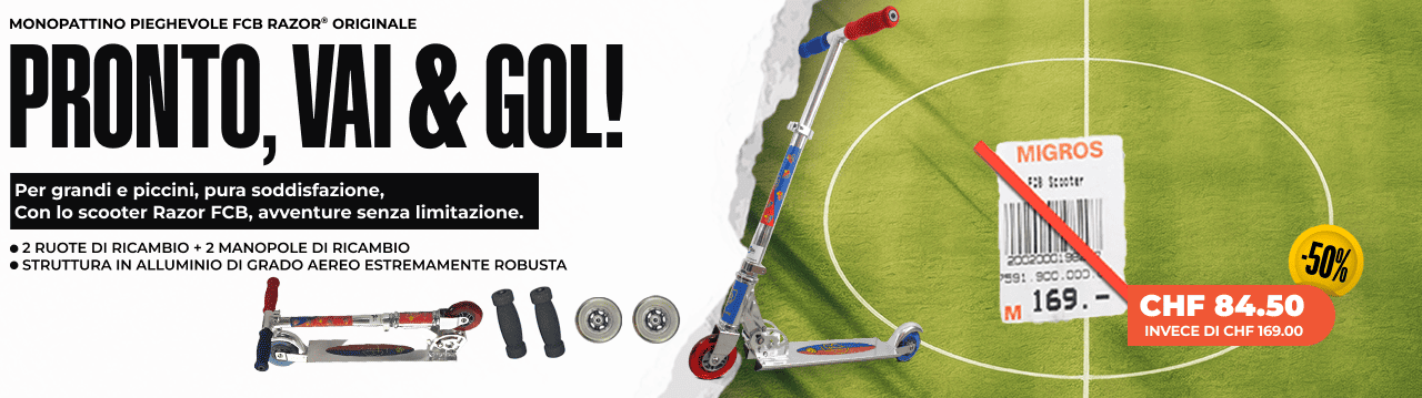 Monopattino FCB-RAZOR incluso 2 ruote di ricambio + 2 Manopole di ricambioCHF 84.50Invece di CHF 169.00